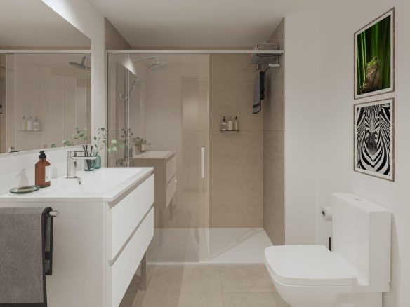 New Construction Residential Complex in El Chaparral, Mijas Modern and Functional Living in the Heart of Costa del Sol Discover this exceptional new construction residential complex in El Chaparral, Mijas, designed for comfortable and modern living. This gated community offers a selection of 46 homes with 2- and 3-bedroom layouts, distributed across two separate blocks. Each residence is thoughtfully designed with first-class materials, ensuring a high standard of quality and comfort. Spacious Homes with Stunning Features Many of these homes boast spacious terraces with breathtaking sea views, while ground-floor units come with large private gardens, perfect for enjoying the natural surroundings. Each property includes a garage space and storage room, adding convenience to this already impressive offering. Exceptional Community Amenities The complex provides a variety of shared spaces designed to enhance your lifestyle. Relax by the outdoor pool, enjoy the beautifully landscaped gardens, or unwind in the chill-out area. These communal areas are perfect for spending time with family and friends or simply relaxing in peace. Strategic Location in Mijas Costa This development is ideally situated in Mijas Costa, a thriving area known for its excellent leisure and service options, including sports facilities, schools, and healthcare centers. The location offers easy access to key attractions: Cabo Pino and Marina Beach: Less than 5 km away (under 5 minutes by car). Fuengirola: Within 10 km (approximately a 10-minute drive). Malaga Airport: Only 30 km away, providing quick and easy travel connections. Nearby Golf Courses: Multiple options within a 10-15 km radius, perfect for golf enthusiasts. Shopping Centers: Reach key retail destinations in under 15 minutes. Sustainability and Energy Efficiency This project is designed with sustainability in mind, featuring energy-efficient systems such as aerothermal heating and double-glazed windows for reduced energy consumption. The building boasts a B energy rating, ensuring lower CO2 emissions and energy savings. Experience the Best of Mijas Nestled between the sea and mountains, Mijas offers a unique blend of sunny beaches and a charming residential atmosphere. With its mild winters and warm summers, this location is ideal for year-round living or as a holiday retreat. Don’t Miss This Opportunity! Make your dream of living on the Costa del Sol a reality. Contact us today to schedule a visit and secure your new home in this exclusive development.