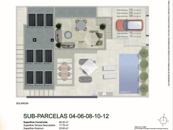 Las propiedades incluyen un sótano en bruto de aproximadamente 120 m², al que se accede a través de una puerta de servicio para facilitar el mantenimiento y el uso futuro. Para aquellos que buscan personalizar sus hogares, existe la opción de terminar el sótano con un coste adicional, lo que permite la instalación de una rampa de garaje, la creación de habitaciones adicionales, o la adición de espacios más funcionales. Además, el solarium se puede completar por un coste adicional, proporcionando aún más opciones de vida al aire libre.