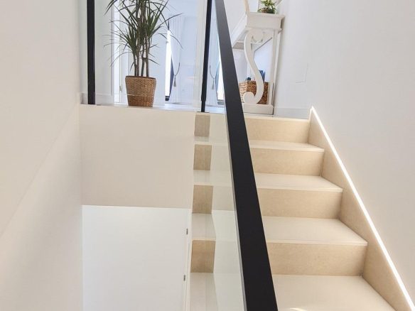 Grandes ventanales en el salón dan acceso directo a la zona de la piscina, inundando el interior de luz natural. Complementos de eficiencia energética como paneles solares y preinstalación de aire acondicionado por conductos garantizan el confort moderno y la sostenibilidad. Los electrodomésticos Balay incluidos (placa de inducción, horno, microondas, campana extractora, frigorífico, lavavajillas integrado y lavadora) facilitan la mudanza.