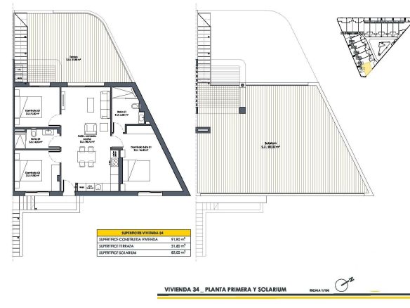Áticos con solarium privado, pérgolas, tomas de corriente y tomas de agua.