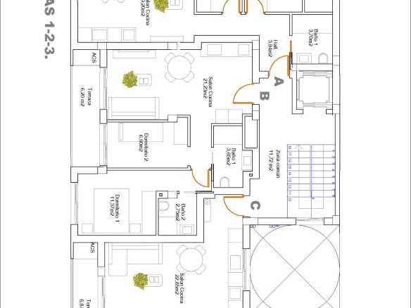 Cada apartamento cuenta con una cocina americana de planta abierta, un luminoso salón-comedor, armarios empotrados y una terraza privada. El edificio incluye un ascensor para 6 personas, y todos los residentes tienen acceso a un solárium comunitario en la azotea con duchas y césped artificial, perfecto para disfrutar del sol y la brisa marina.