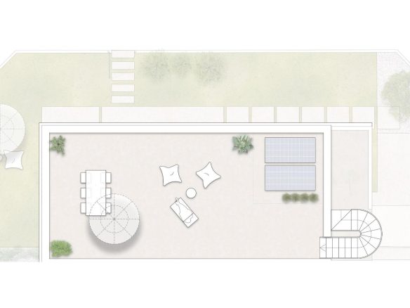 Terraza en la primera planta y solárium privado en la azotea con vistas despejadas