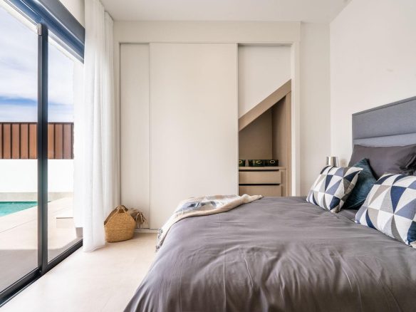 Las villas están cuidadosamente diseñadas para combinar funcionalidad y estética, con fachadas revestidas de piedra en ángulo, acabados elegantes y mucho espacio exterior para disfrutar del sol mediterráneo durante todo el año.