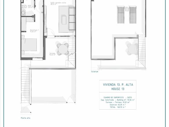 Plantas altas con grandes soláriums que incluyen cocina de verano y pérgola con paneles solares.