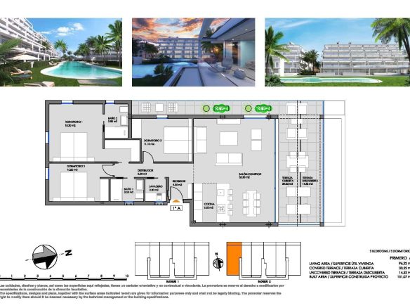 Puede elegir entre apartamentos de planta baja con jardín privado, apartamentos de planta media con terraza y áticos con solarium privado. Las viviendas tienen 2 o 3 dormitorios y 2 baños.