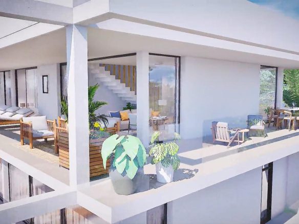 Los apartamentos tienen un diseño moderno, presentando una zona de estar de planta abierta, que combina la cocina, el comedor y el salón, en un gran espacio con acceso a la terraza.