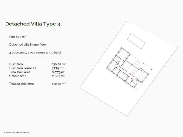 Cada villa se encuentra en una parcela privada de 800 m² y está distribuida en una sola planta, lo que ofrece el máximo confort y accesibilidad. Elija entre 5 distribuciones diferentes con 3 o 4 dormitorios, 2 o 3 baños y superficies construidas que van desde los 130 hasta los 178 m². Todas las viviendas cuentan con amplias terrazas cubiertas, ideales para disfrutar del aire libre durante todo el año.