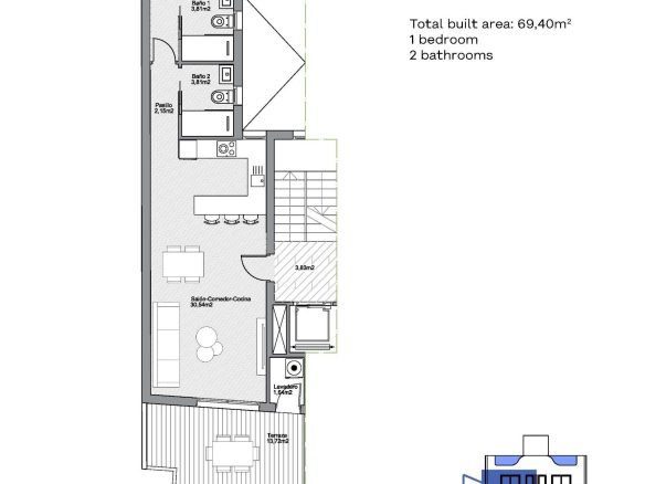 Elija entre apartamentos de 1 o 2 dormitorios, cada uno con 2 baños (uno en suite). Las distribuciones abiertas están diseñadas para maximizar el espacio y la luz natural, garantizando tanto la comodidad como la funcionalidad. Los acabados de primera calidad, como las puertas de entrada de seguridad, los armarios empotrados con acabados textiles, la carpintería de aluminio con rotura de puente térmico y las persianas motorizadas en el salón, garantizan la durabilidad y el estilo. Las cocinas y los baños cuentan con accesorios de alta calidad, con mamparas de ducha y espejos empotrados incluidos. Aire acondicionado por conductos preinstalado para disfrutar de comodidad durante todo el año.