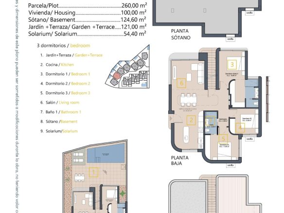 Chalets independientes en primera línea de golf, con 3 dormitorios, 2 baños, sótano, solárium y piscina privada.
