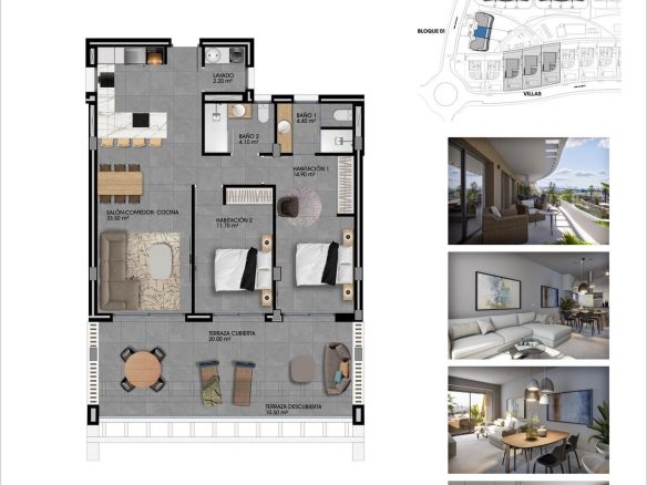 Elija entre apartamentos de lujo de 2 y 3 dormitorios disponibles en plantas bajas con jardines privados, plantas intermedias con amplias terrazas con vistas al mar o impresionantes áticos con soláriums privados. También hay disponibles exclusivas villas de 3 dormitorios, con distribuciones de una sola planta, piscinas privadas y sótanos, ideales para vivir de forma permanente o como inversión de alto rendimiento.