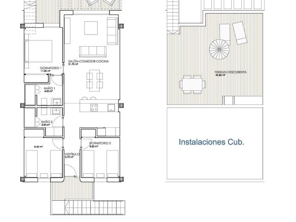 El proyecto ofrece amplias propiedades con 3 dormitorios y 2 baños, incluido un baño en suite en el dormitorio principal. Los compradores pueden elegir entre bungalows en planta baja con amplias terrazas privadas o unidades en planta superior con terraza y solárium privado en la azotea con vistas despejadas. Todas las viviendas incluyen una plaza de aparcamiento subterráneo y un trastero, lo que proporciona la máxima comodidad.