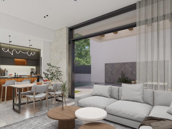 Cada villa tiene 110 m² de superficie habitable bien distribuida en dos plantas, diseñadas para maximizar la luz natural y la funcionalidad. Construidas en parcelas a partir de 185 m², las propiedades ofrecen amplias zonas exteriores perfectas para tomar el sol, divertirse o relajarse junto a la piscina privada.