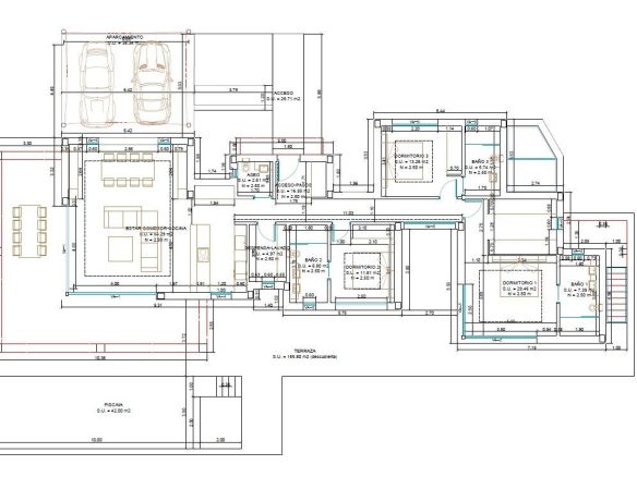 La zona de dormitorios incluye tres dormitorios dobles, cada uno con su propio cuarto de baño en suite. La suite principal cuenta con un vestidor para mayor comodidad y estilo.