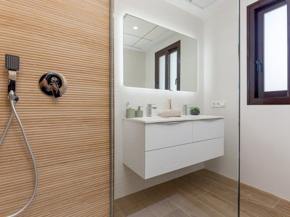 Villas amplias y luminosas con 3 dormitorios y 2 baños, cocina abierta con salón-comedor, hermosa terraza, jardín privado con la piscina y plaza de aparcamiento.