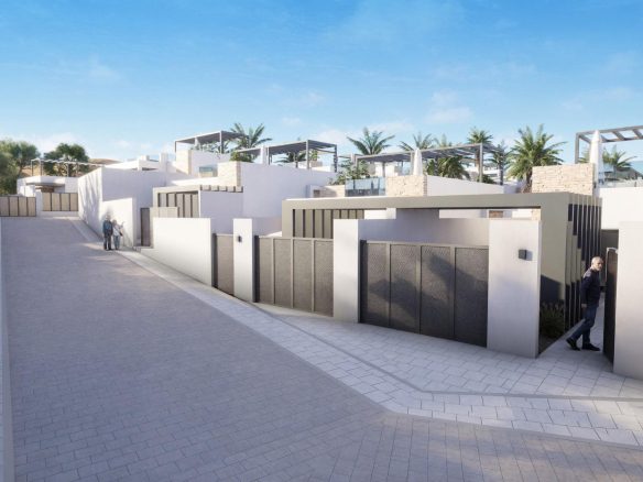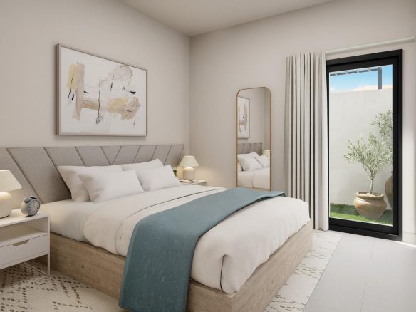 Estas viviendas, bellamente diseñadas, cuentan con 3 dormitorios y 2 baños, una amplia zona de estar diáfana y una conexión perfecta entre el interior y el exterior. Cada villa incluye un solárium privado, una piscina privada y una parcela independiente con zonas ajardinadas.